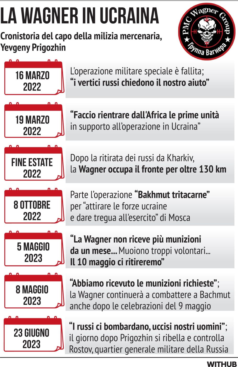 Fondato in Russia nel 2014 da Evgenij Prigozhin, da tempo nel cerchio di Vladimir Putin, il gruppo Wagner è ufficialmente una società militare privata ma ha stretti rapporti con gli apparati di sicurezza russi, a partire dall'intelligence. Si stima che avesse fino a 50mila uomini a combattere in Ucraina, dopo l'invasione del 2022, anche se ha subito moltissime perdite.
