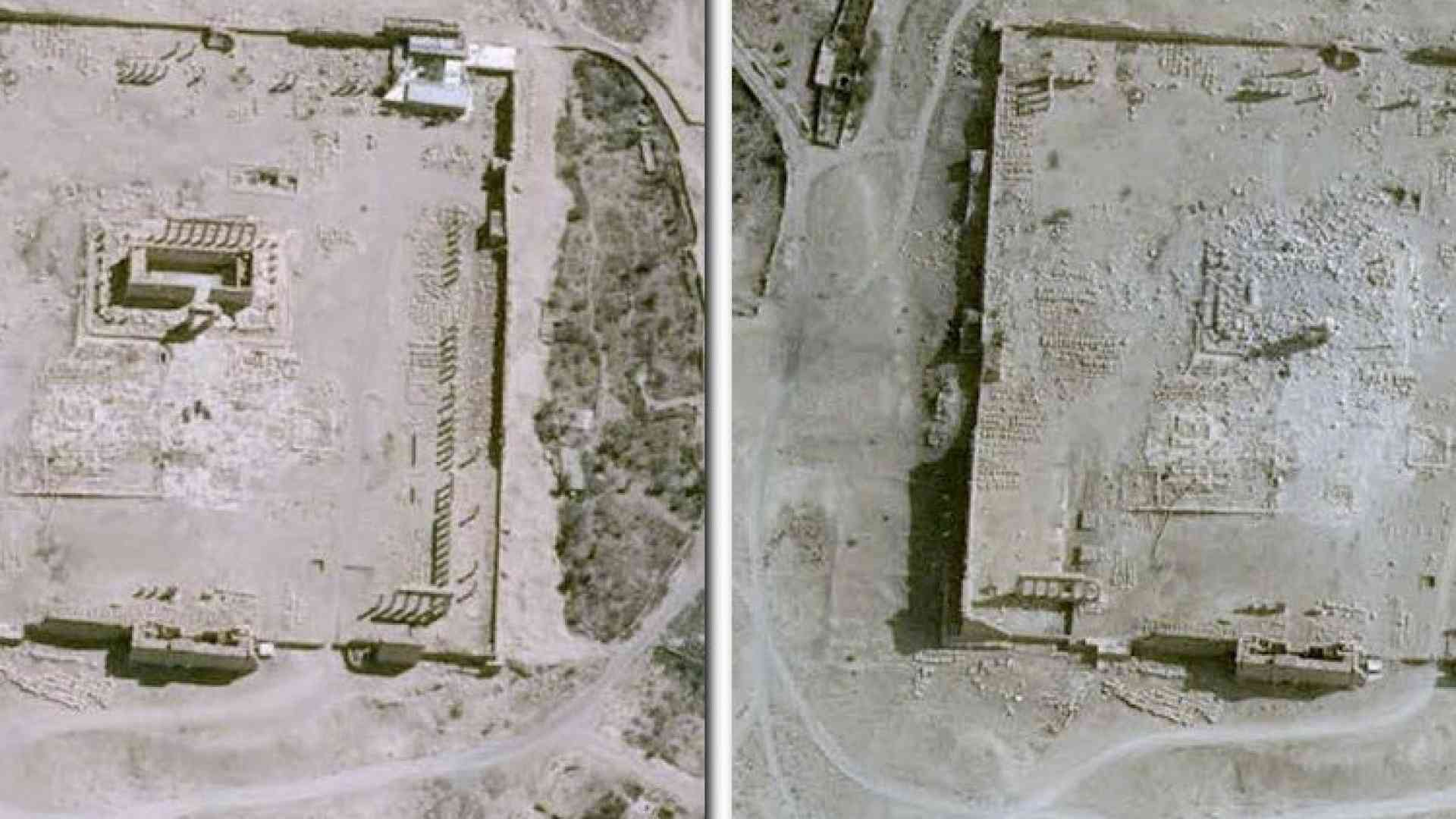 Le prime ricognizioni dopo la riconquista della città archeologica da parte dell'esercito siriano. Nella foto il Tempio di Bel prima e dopo. FOTO E VIDEO.