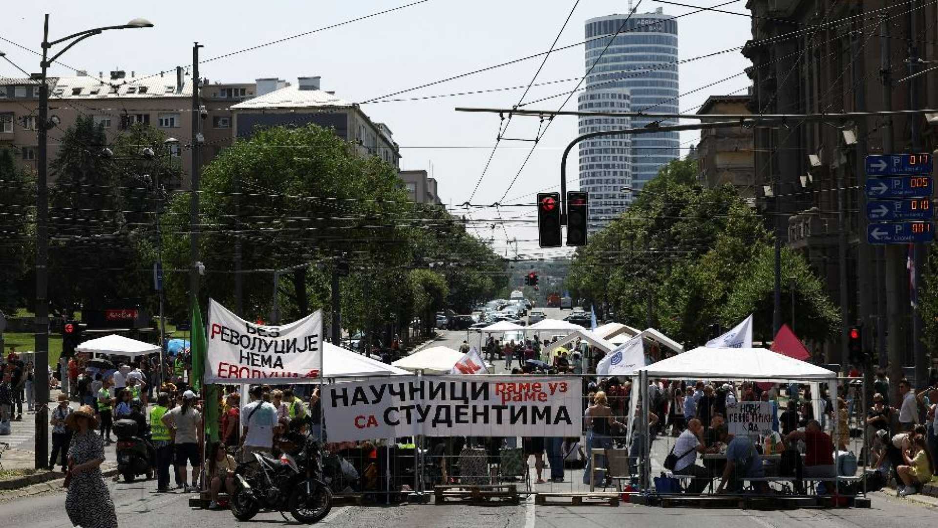 In un’afosa mattina di giugno l’appuntamento è all’incrocio tra la Kneza Milosa e la Nemanjina, due delle principali arterie del centro, di fronte ai palazzi modernisti di epoca jugoslava in cui hanno sede i ministeri serbi. Al nostro arrivo decine di tende e gazebo sono già state montate sull’asfalto. Il presidio è stato organizzato dal gruppo “Pobunjeni univerzitet” (“Università in rivolta”) composto da studenti e docenti delle facoltà cittadine con il sostegno del rettore. «Con la nuova legge sull’istruzione superiore il governo vuole metterci a tacere promuovendo la privatizzazione dell’università, svendendola ai capitali esteri, ma noi non ce ne andremo di qua finché le nostre richieste non saranno accolte», spiega Nenad, al secondo anno di Architettura. Tutte le facoltà cittadine sono occupate dal novembre scorso. Migliaia di studenti hanno marciato in tutta la Serbia, bloccando ponti, occupando piazze e chiedendo a gran voce elezioni anticipate. Da mesi le strade di Belgrado e della altre città della Serbia sono tornate a essere teatro di manifestazioni che non si vedevano dai tempi di Milosevic.