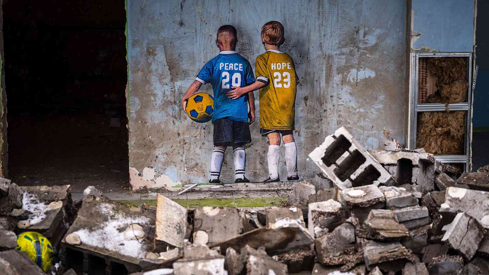 ANSA | Un murale dello street artist TvBoy a Irpin
