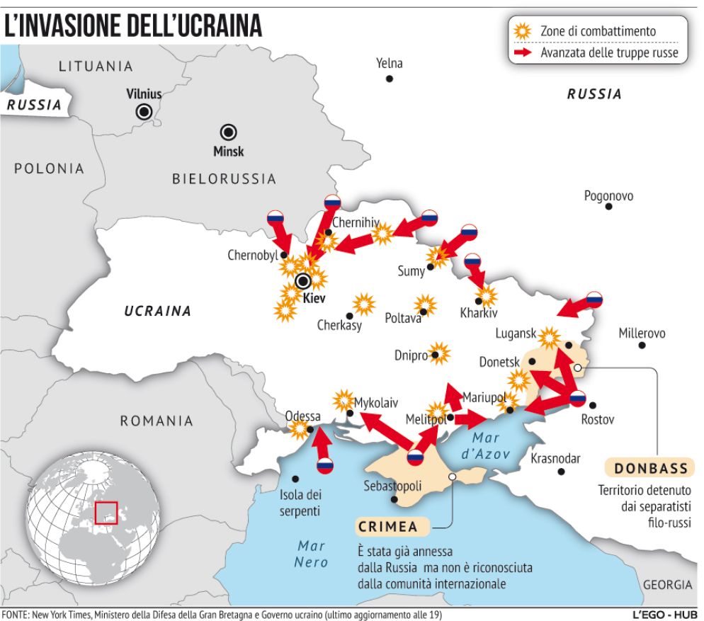 L’ultimo bilancio dell’Onu parla di 102 morti, tra cui sette bambini, ma le cifre riferite dalle autorità di Kiev sono ancora più drammatiche, con almeno 352 civili uccisi, tra cui 16 bambini. Fino ad ora quasi 422mila persone hanno attraversato i confini internazionali dell’Ucraina in cerca di sicurezza, soprattutto in Polonia, Moldavia, Romania e oltre, informa l’Alto commissariato Onu per i rifugiati. Il numero continua a crescere da ora in ora. A questi vanno aggiunti gli oltre 100mila che hanno abbandonato le loro case e sono sfollate all’interno del Paese. Le agenzie Onu parlano tuttavia di stime prudenziali, poiché le condizioni di sicurezza nel Paese non consentono di accedere a informazioni particolareggiate.