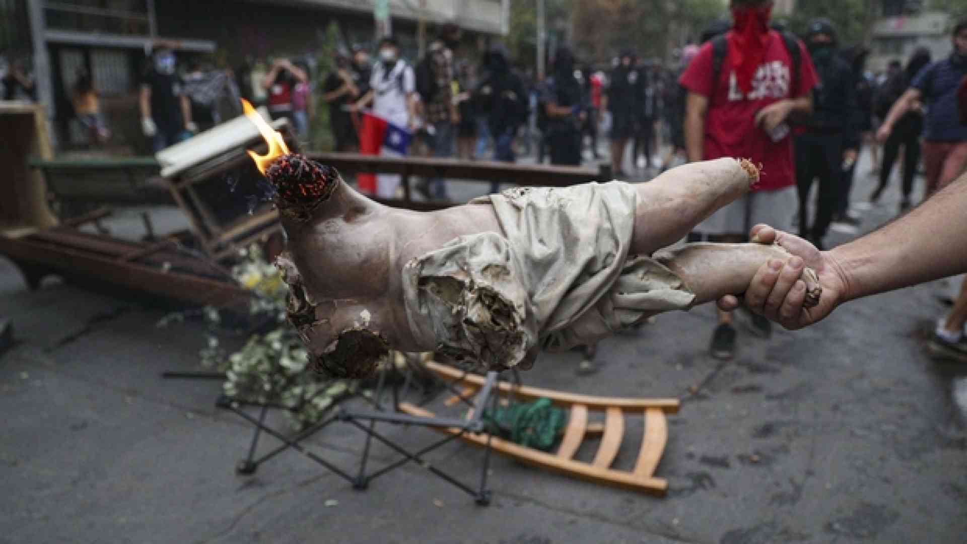 Profanata una chiesa a Santiago: bruciati statue e arredi sacri