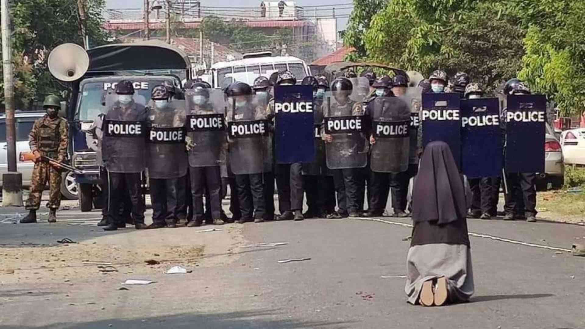 Il suo nome è sister Ann Nu Thawng ed è una religiosa delle missionarie di San Francesco Saverio di Myitkyina, dello Stato del Kachin. Le foto che la riprendono inginocchiata davanti alla polizia antisommossa sono forse l’immagine-simbolo della giornata più difficile e sanguinosa ieri in Myanmar. A rilanciare la foto, da Yangon, è il cardinale Charles Bo, presidente dei vescovi del Myanmar, che segue con apprensione le manifestazioni in tutto il Paese. Lo riferisce l'agenzia Sir.