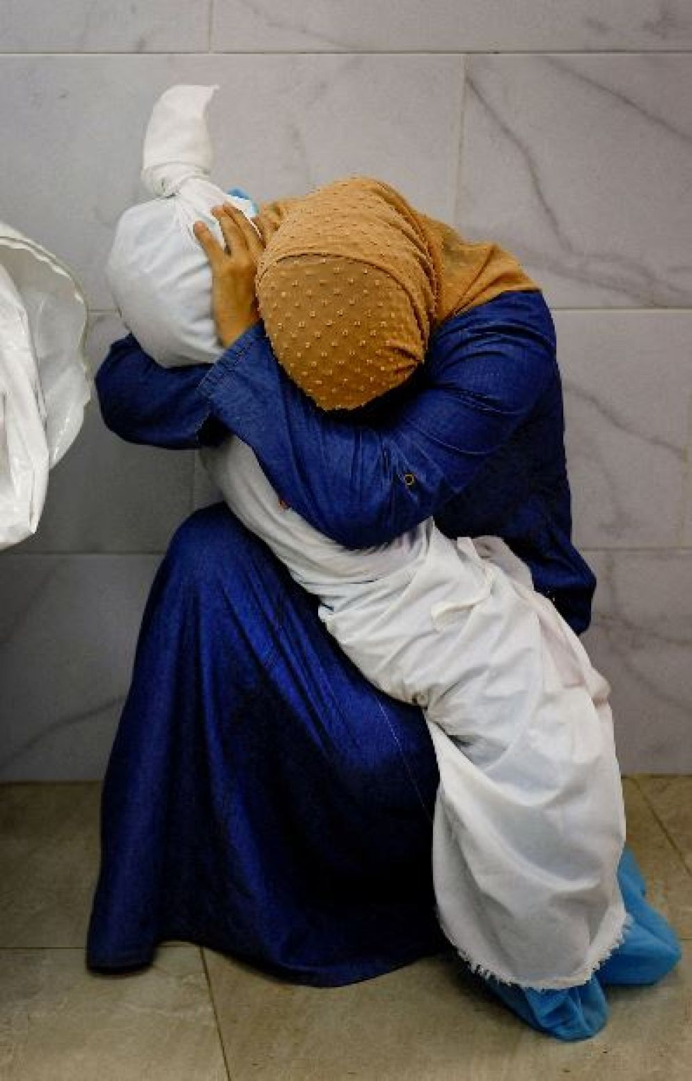 Scattata il 17 ottobre 2023 all'ospedale di Nasser di Gaza, appena dieci giorni dopo l'inizio del conflitto, la foto ritrae Inas Abu Maamar, una donna di 36 anni, con una veste azzurra, che ricorda il colore associato al manto della Madonna, mentre abbraccia il corpo senza vita di Saly, sua nipote, di cinque anni, coperta da un lenzuolo bianco, simbolo di innocenza e purezza, uccisa insieme alla madre e a una sorella da un missile israeliano piombato sulla loro casa di Khan Yunis.