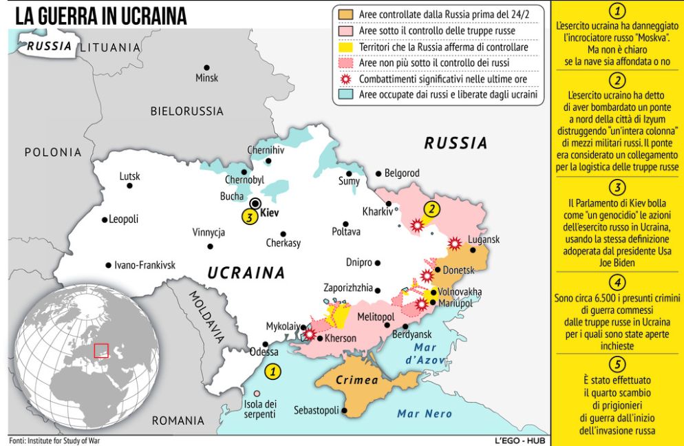 Si è tornato a discutere a livello politico della parola "genocidio" utilizzata nei giorni scorsi dal presidente statunitense Joe Biden e su cui il presidente francese Emmanuel Macron aveva preso le distanze. "Non abbiamo gli elementi per verificare se sia già o meno un genocidio", ma "le atrocità sono sotto gli occhi di tutti" ha spiegato il ministro degli Esteri italiano, Luigi Di Maio, ricordando "200 bambini morti, 2.000 civili ammazzati" in Ucraina. "Siamo stati uno tra i primi Paesi al mondo a chiedere alla Corte penale internazionale di verificare tutti i crimini di guerra e - ha aggiunto Di Maio - attraverso l'Ue forniremo tutte le prove a nostra disposizione per verificare se ci siano stati dei crimini di guerra".