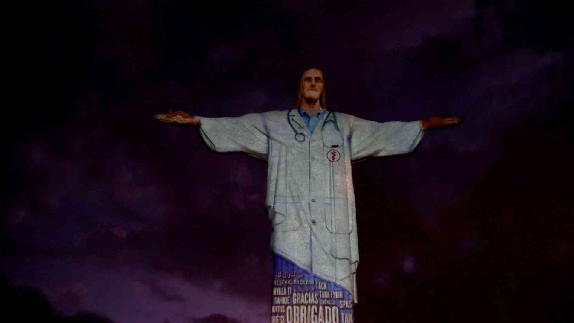 Nel giorno di Pasqua, la Chiesa brasiliana ha reso omaggio al personale sanitario impegnato nel contrasto all'epidemia di coronavirus e ha "vestito" con l'immagine di un camice medico l'imponente statua bianca del Cristo Redentore che sovrasta la città di Rio de Janeiro.