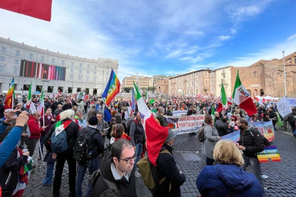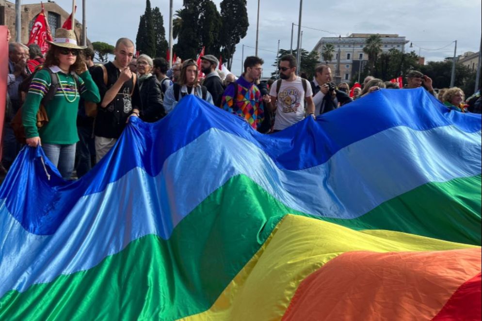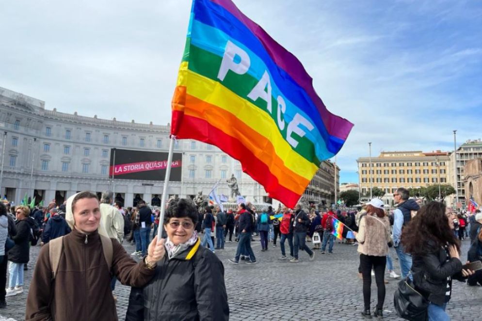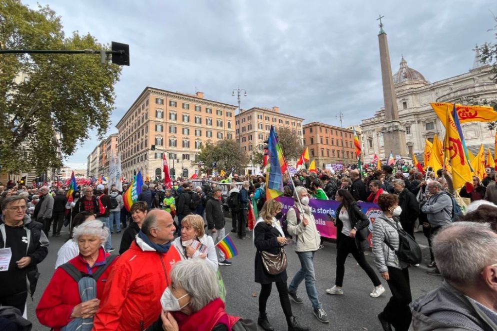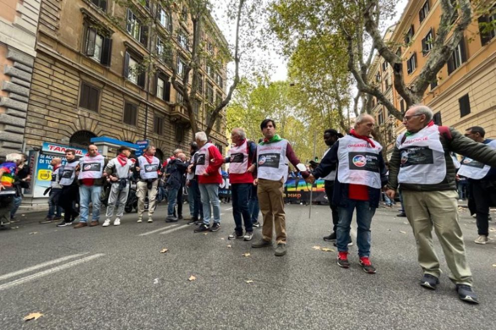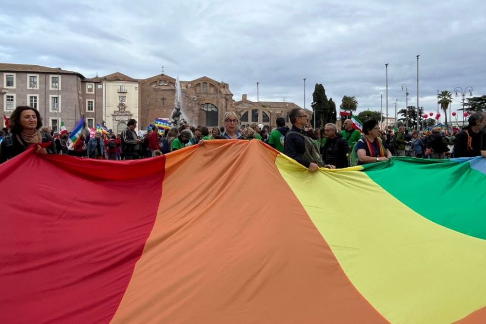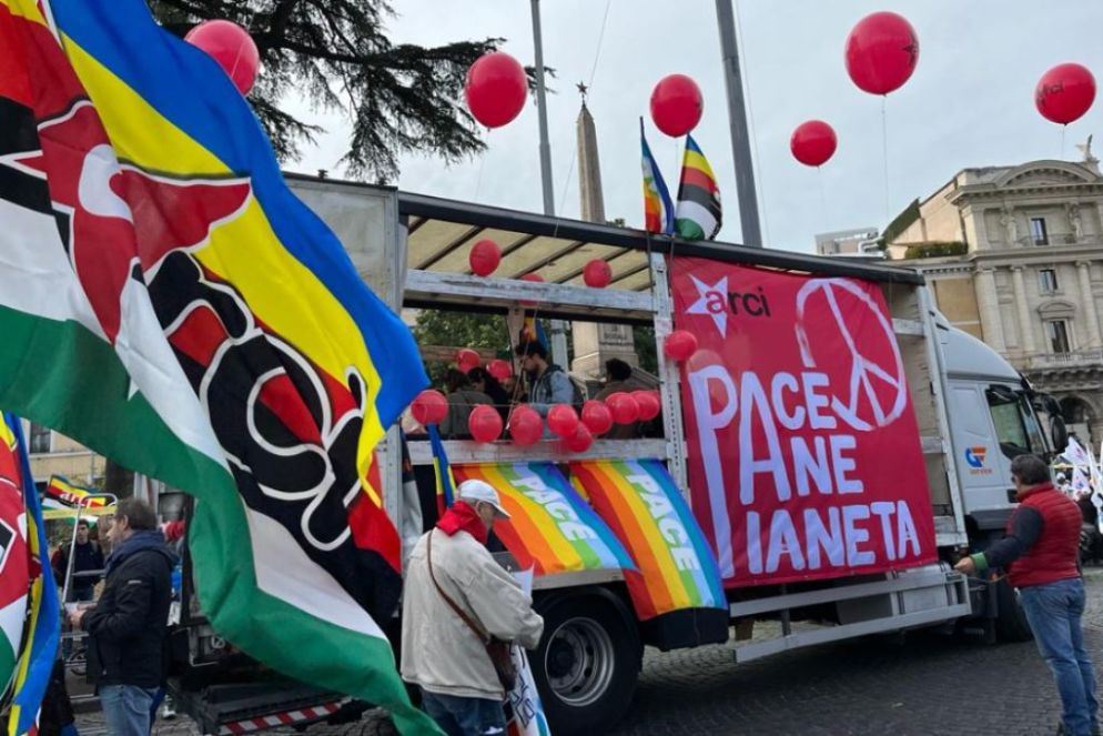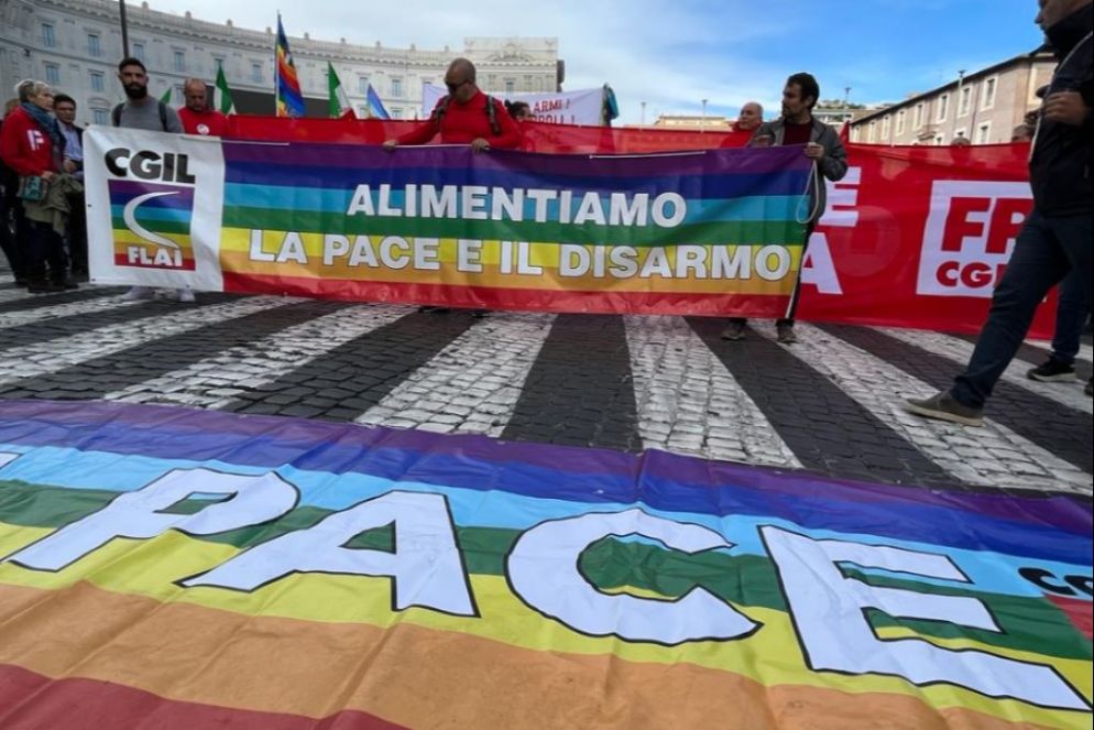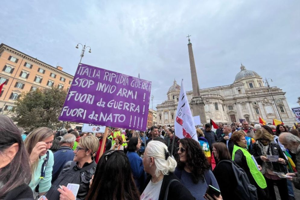 Le migliaia di persone che da piazza della Repubblica si muovono in corteo verso Piazza san Giovanni sono giunte a Roma per chiedere la pace