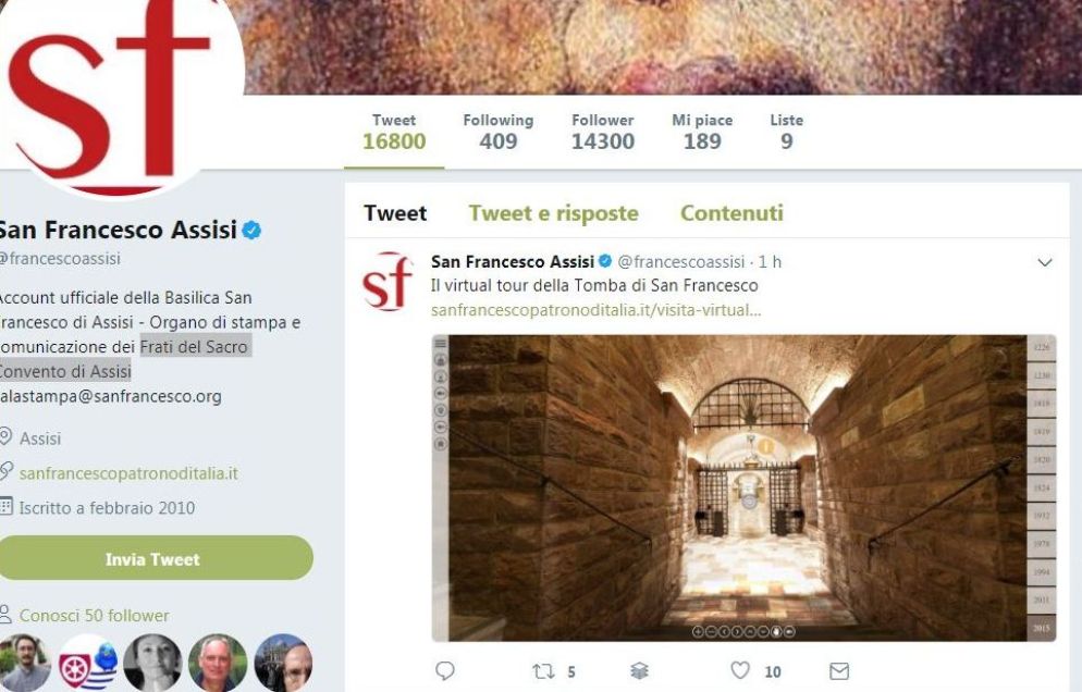Dopo la webcam, a cui si era collegato attraverso un tablet anche papa Francesco nel 2013 pochi mesi dopo la sua elezione al soglio pontificio, da oggi sul sito del santo patrono di Italia chiunque può riavvicinarsi virtualmente al messaggio del Poverello di Assisi e può accedere al tour virtuale della sua tomba. Basta collegarsi con il computer o il tablet e cliccare sull'icona virtual tour: non mancano le informazioni storiche che vanno dalla morte di san Francesco al restauro della Cripta nel 2011; e attraverso il mouse ci si può muovere e avvicinare fino al luogo volutamente spoglio che costituisce il cuore del Santuario francescano. Vi è inoltre una carrellata di fotografie dei Pontefici che nel corso della storia del cristianesimo si sono fermati in preghiera davanti alla tomba di san Francesco d'Assisi.
