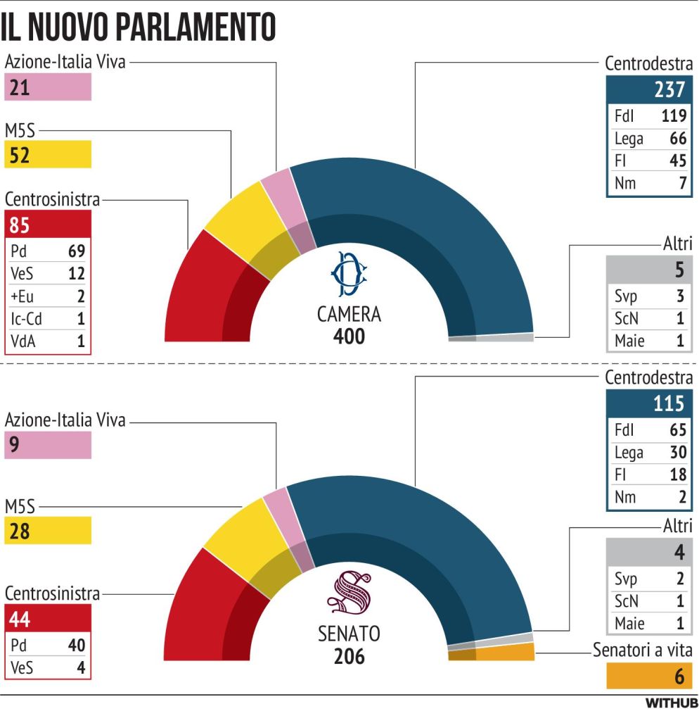 Ecco la composizione di Camera e Senato. Meno donne elette, Fdi ora è «nordista»
