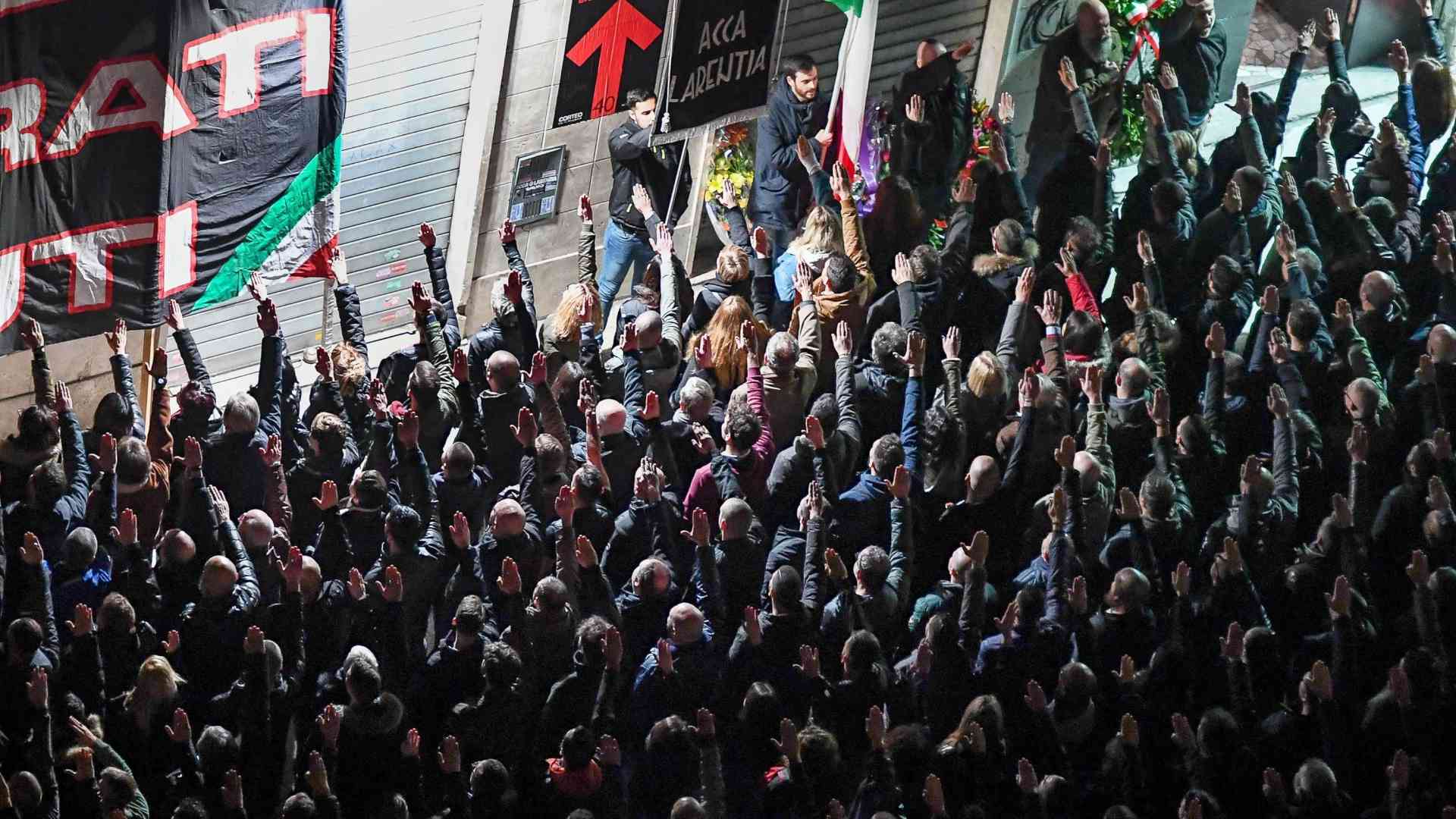 «La commemorazione di Acca Larenzia si svolge in quelle stesse forme dal 1979, nel frattempo hanno governato sia il Pd, sia Renzi e Conte che oggi si scandalizzano. Curioso che la sinistra scopra il caso Acca Larenzia solo adesso». È Giovanbattista Fazzolari, sottosegretario alla presidenza del Consiglio e ascoltato collaboratore di Giorgia Meloni, a provare a chiudere il caso. Ma non c'è solo la difesa. «Sono certo - insiste Fazzolari - che, se si riuscisse a dare giustizia alle vittime di quel terribile attentato, sarebbe più facile storicizzare quel periodo e il ricordo dei militanti di destra uccisi negli anni 70». Il caso però chiuso non è. La Digos è al lavoro. Si stanno esaminando video e si sono individuati alcuni manifestanti alla commemorazione del 7 gennaio. I pm di Roma valutano il reato di apologia di fascismo e sarebbero 5 i primi denunciati per il saluto romano. Il ministro dell'Interno Piantedosi non nasconde l'indignazione e prende nettamente le distanze dalla commemorazione ma precisa: vietare manifestazioni è controproducente. Intanto la polemica sui saluti romani ad Acca Larentia irrompe sull'arena europea. Un'immagine "scioccante" per il capogruppo dei liberali di Renew Europe, Stephane Sejourné. «In Europa non c'è posto per il saluto fascista, lo condanniamo con massima fermezza», chiarisce il leader del Ppe Manfred Weber. È «inaccettabile, allarmante», denuncia il gruppo dei Socialisti e democratici. Un fronte comune che condivide i timori di un exploit delle destre alle elezioni di giugno e guarda con attenzione all'Italia. Dove Giorgia Meloni finora ha evitato ogni commento mentre i suoi hanno preso le distanze da chi scandiva il "presente" con il braccio teso commemorando i tre militanti del Fronte della gioventù uccisi nel '78. Giovanni Donzelli, uno dei più stretti collaboratori di Meloni, definisce i manifestanti «duecento imbecilli utili solo alla sinistra». E parla anche il ministro della Cultura Sangiuliano: «Sono contrario a che si facciano i saluti romani, perché il fascismo è stata una dittatura, però queste manifestazioni sono avvenute anche durante i governi di centrosinistra e sembravano normali. Poi c'è il tema che i responsabili dell'assassinio di tre persone non sono mai stati individuati e processati. Penso che sia più grave il tema di assicurare alla giustizia i responsabili che questo della manifestazione»