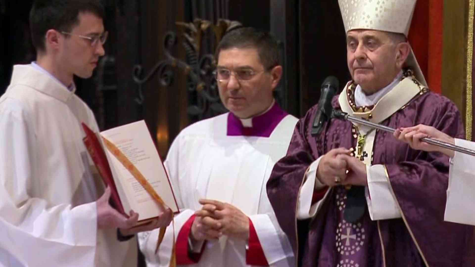 È l’arciprete della Cattedrale, monsignor Gianantonio Borgonovo, ad accogliere e benedire il feretro di Berlusconi all’ingresso in Duomo e ad accompagnarlo fino ai piedi dell’altar maggiore, mentre risuona l’applauso delle quindicimila persone raccolte in piazza – che seguono il rito dai maxi schermi – e quello delle oltre duemila all’interno della Chiesa madre dei milanesi – i familiari, gli amici, i rappresentanti delle istituzioni, a partire dal presidente della Repubblica, Sergio Mattarella, i leader politici, alleati e avversari. Ha assistito alla liturgia, celebrata secondo il rito ambrosiano, l’arcivescovo Emil Paul Tscherrig, nunzio apostolico in Italia.