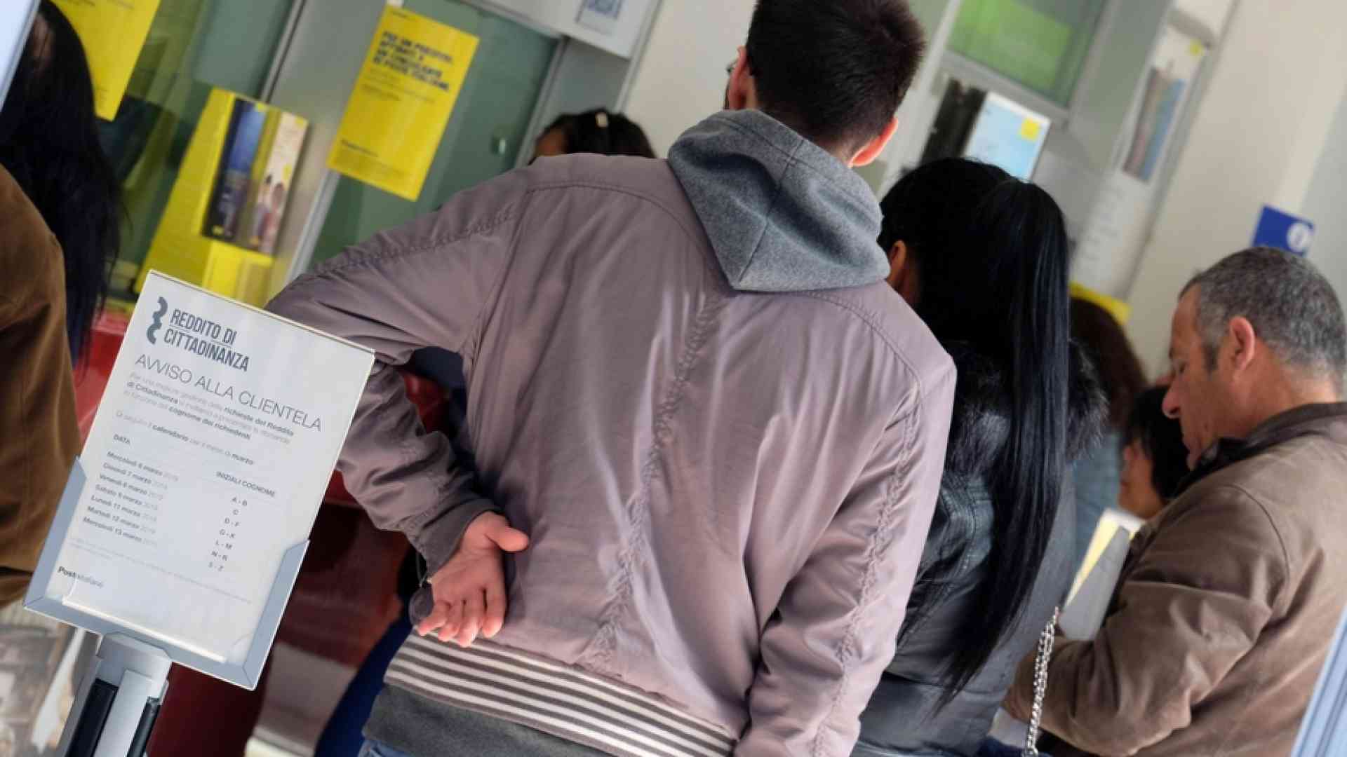 Ansa | In fila a un Caf di Palermo per richiedere il reddito di cittadinanza. Foto d'archivio