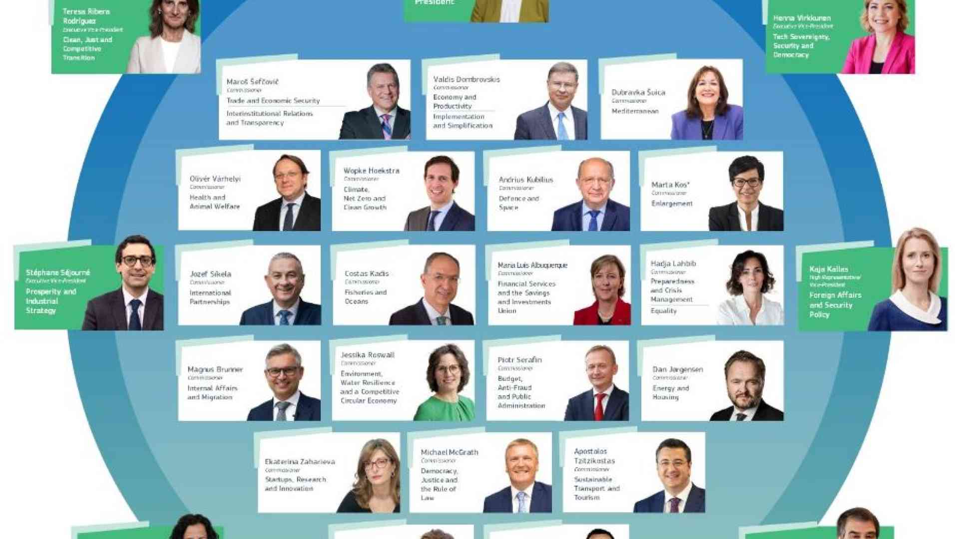 Guardando alla struttura complessiva della nuova Commissione, spicca anzitutto il fatto che di sei vicepresidenti quattro sono donne: oltre a Kaja Kallas, che sarà Alto rappresentante Ue, figurano la spagnola Teresa Ribera Rodriguez, responsabile per la transizione climatica, la finlandese Henna Virkkunnen (sovranità tecnologica, sicurezza e democrazia), la rumena Roxana Minzatu (educazione e formazione). Oltre a Fitto c’è poi il francese Stéphane Séjourné (prosperità e strategia industriale), nominato lunedì da Emmanuel Macron al posto di Thierry Breton. Tra gli altri portafogli, oltre a Dombrovskis all’Economia, spiccano l’ex ministro delle Finanze austriaco Magnus Brunner alla migrazione, il lussemburghese Christophe Hansen all’agricoltura, il polacco Piotr Serafin al Bilancio, la croata Dubravka Suica come commissaria al Mediterraneo, lo slovacco Maros Sefcovic al Commercio estero, il danese Dan Jørgensen all’Energia, la portoghese Maria Luis Albuquerque ai servizi finanziari e l’olandese Wopke Hoekstra al Clima. Von der Leyen ha sottolineato che le priorità chiave saranno costruite "intorno alla prosperità, la sicurezza, la democrazia>, con