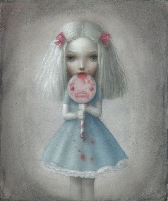 Nicoletta Ceccoli, Dolceamara (ragazza con il Lecca-lecca) acrilici su carta, Collezione Privata.