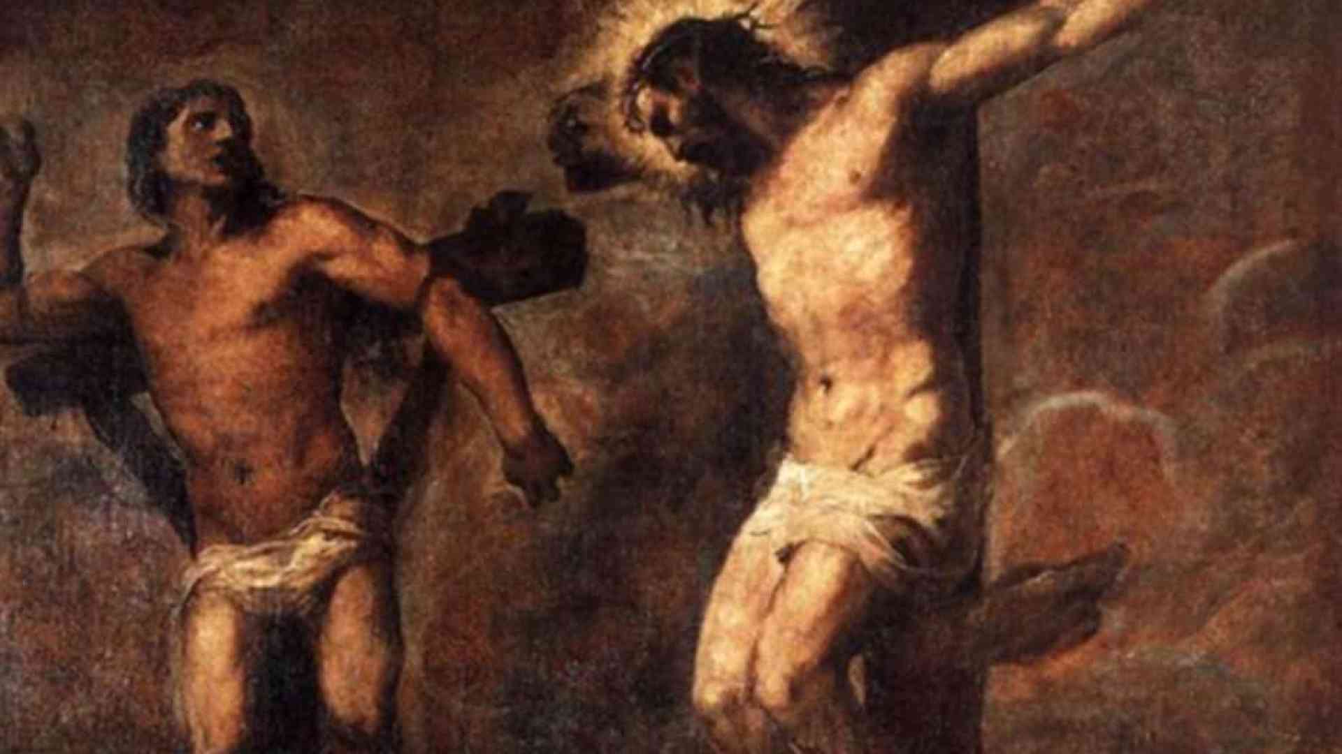 (In quel tempo) il popolo stava a vedere; i capi invece deridevano Gesù dicendo: «Ha salvato altri! Salvi se stesso, se è lui il Cristo di Dio, l’eletto». (...) Uno dei malfattori appesi alla croce lo insultava: «Non sei tu il Cristo? Salva te stesso e noi!». L’altro invece lo rimproverava dicendo: «Non hai alcun timore di Dio, tu che sei condannato alla stessa pena? Noi, giustamente, perché riceviamo quello che abbiamo meritato per le nostre azioni; egli invece non ha fatto nulla di male». E disse: «Gesù, ricordati di me quando entrerai nel tuo regno». Gli rispose: «In verità io ti dico: oggi con me sarai nel paradiso».