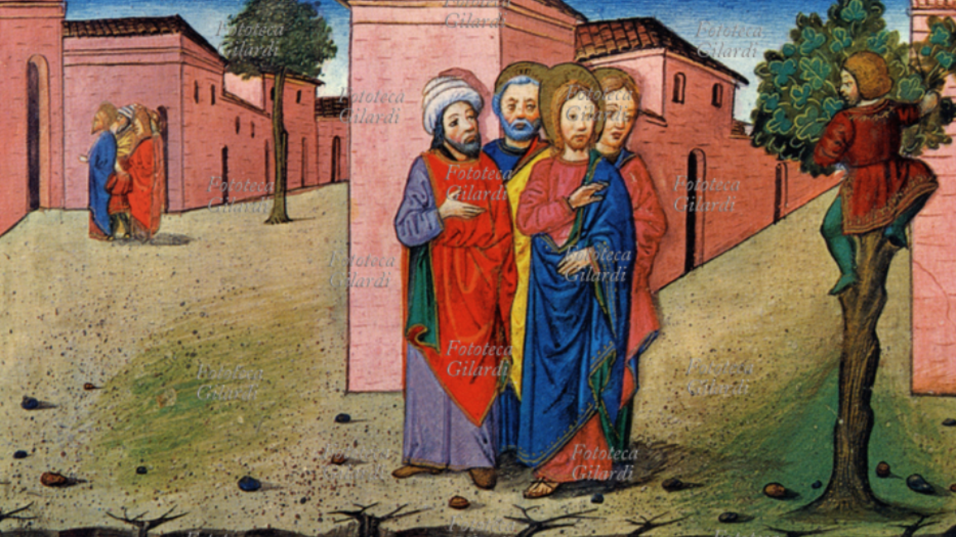 In quel tempo, Gesù entrò nella città di Gerico e la stava attraversando, quand’ecco un uomo, di nome Zaccheo, capo dei pubblicani e ricco, cercava di vedere chi era Gesù, ma non gli riusciva a causa della folla, perché era piccolo di statura. Allora corse avanti e, per riuscire a vederlo, salì su un sicomòro, perché doveva passare di là. Quando giunse sul luogo, Gesù alzò lo sguardo e gli disse: «Zacchèo, scendi subito, perché oggi devo fermarmi a casa tua».