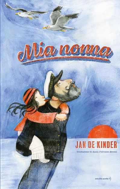 Nonno e nipote s’incontrano al porto sotto un concerto di gabbiani. Passeranno insieme una giornata in barca, a godersi il mare, a fare merenda, guardare le nuvole distesi a pancia in su e a chiacchierare di tante cose. Della nonna per lo più, che è sempre in cima ai pensieri del nonno. Una supernonna brillante e spericolata, di cui anche oggi si sente la mancanza, come dice il nonno alzando gli occhi al cielo con lo sguardo accigliato. Dunque la nonna è lassù, in cielo e non tornerà più? suppone il lettore. Qui è d’obbligo fermarsi, perché ogni particolare aggiunto alla storia toglierebbe la sorpresa dell’epilogo. Quello che si può dire è che nulla è come sembra e che una storia per niente banale, nata malinconica può chiudersi con un sospiro di sollievo e il sorriso. L’olandese Jan De Kinder, autore, illustratore e grafico, ci regala tavole strepitose e un albo pieno di ironia e di tenerezza ,senza sbavature sdolcinate. Dai 4 anni