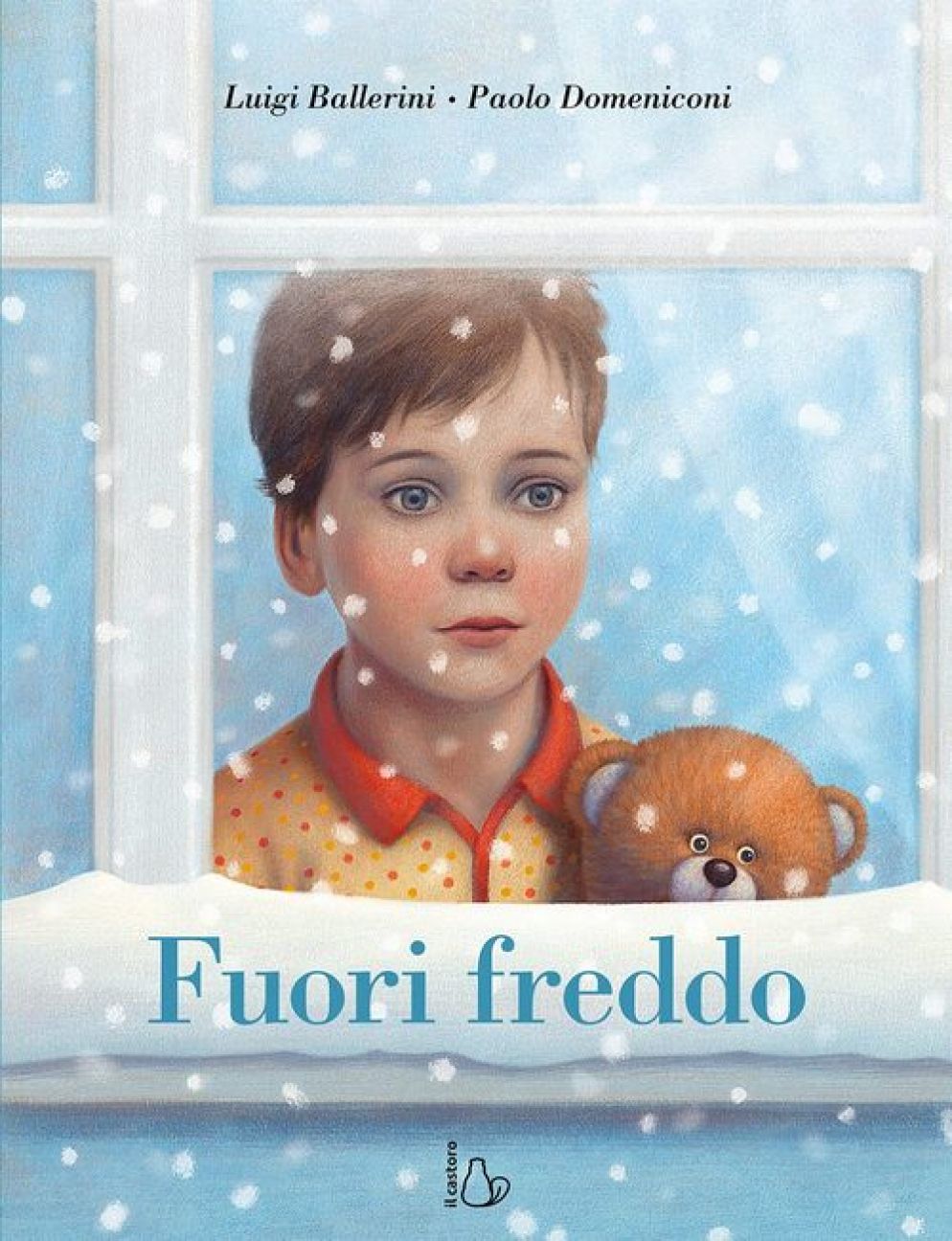 Fuori Freddo (Il Castoro; 16,50 euro) è un grande albo in cui l’essenzialità del testo di Luigi Ballerini accompagna le tavole poetiche a doppia pagina di Paolo Domeniconi. Del resto questa storia vive di contrasti. Fuori una giornata invernale gelida, con la neve che ha già imbiancato la città e continua a scendere. Dentro casa, al caldo, un bambino è ammalato.