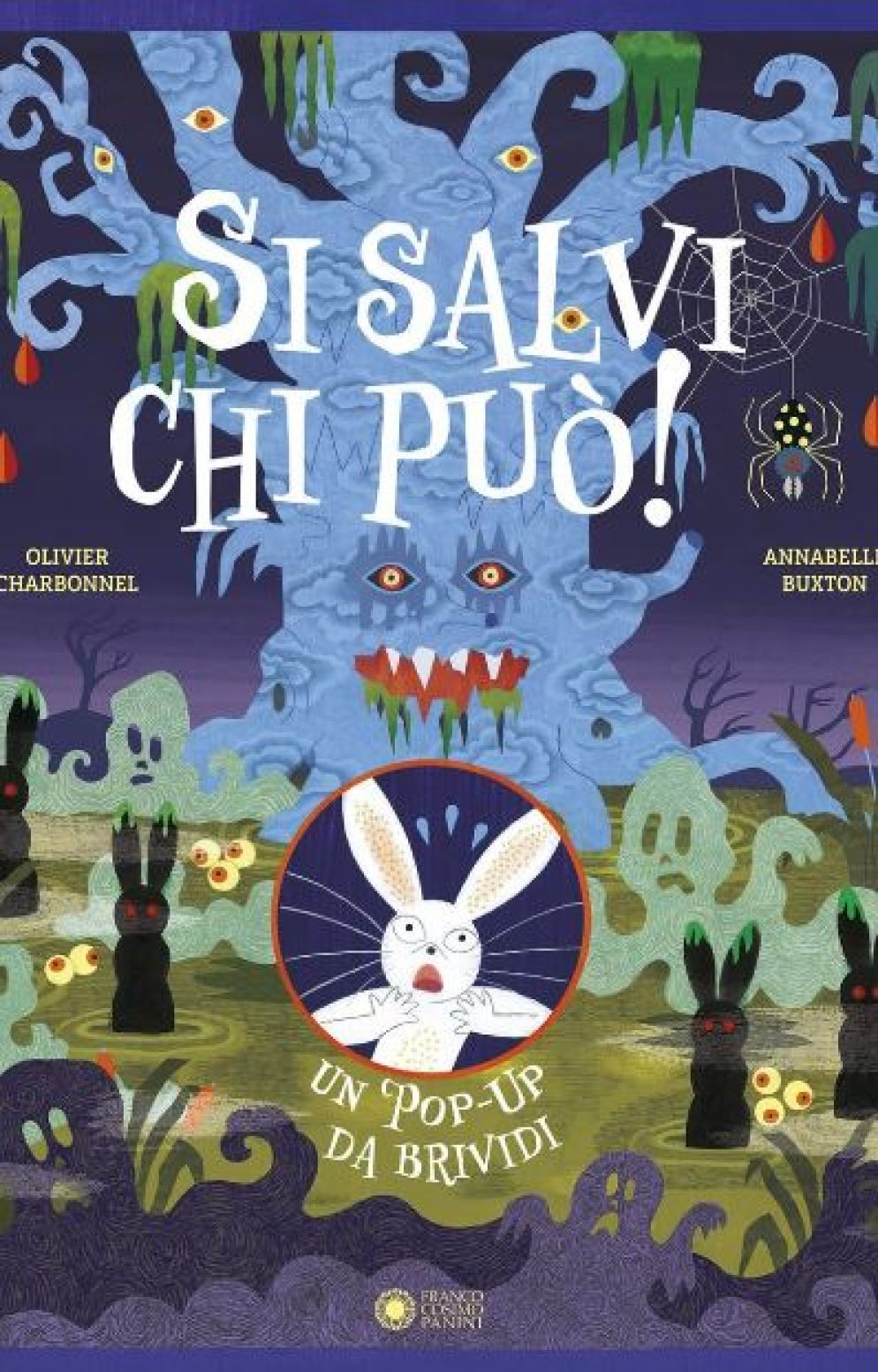 Un po’ libri e un po’ gioco, i pop up piacciono ai piccoli e agli adulti, grazie ai virtuosismi cartotecnici che, aggiungendo alle pagine la terza dimensione, regalano costruzioni sorprendenti nel vero senso della parola. Va da sé che vanno maneggiati con cura, aspetto questo che abitua a sfogliare con attenzione, a considerare il libro come un oggetto da rispettare per la sua fragilità. “Si salvi chi può!” è una favola brividosa, la storia semplice raccontata una notte da Coniglio ai sui figliolini di quella volta in cui per un tremendo sbaglio dall’orto di casa si era cacciato in un brutto guaio, finendo per vivere un’avventura piena di pericoli. Perso il sentiero giusto si era inoltrato in una foresta stregata, popolata da piante carnivore affamate e raffreddate, pipistrelli e ragni. Arrivando infine in una grotta dove al tavolo imbandito per un sontuoso banchetto strane creature si apprestavano a un pranzo speciale. Di pagina in pagina ci sono alette da sollevare e linguette da trascinare per scoprire tanti personaggi altrimenti nascosti. Tranquilli, le figure vorrebbero essere spaventevoli ma non ci riescono fino in fondo. E in conclusione l’astuzia vince su tutto. Dai 4 anni