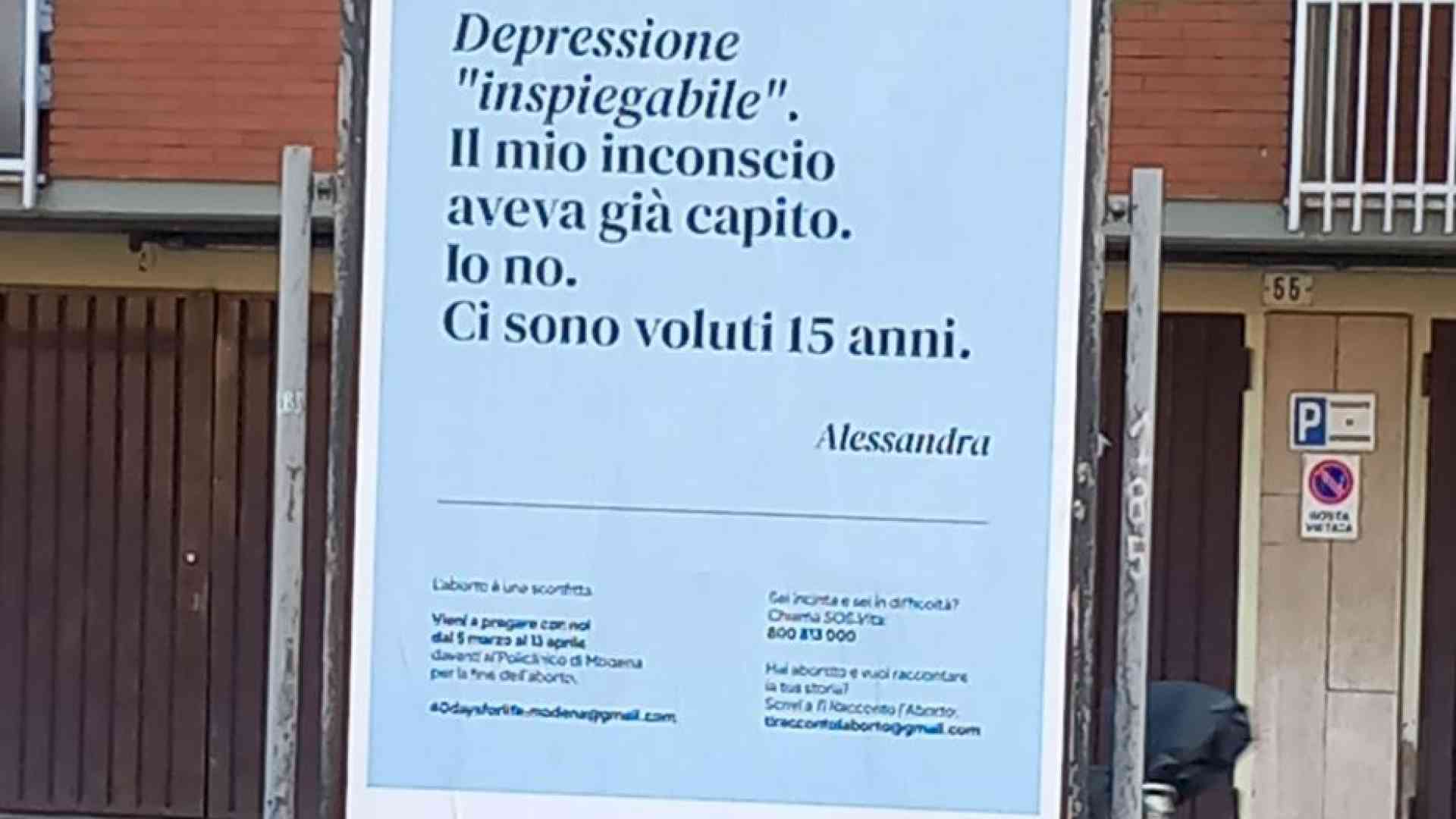 I manifesti sono firmati da “40 giorni per la vita”, la campagna di preghiera e sensibilizzazione per la fine dell’aborto volontario nata nel 2004 nella cittadina di College Station negli Usa e ora diffusa in centinaia di città nel mondo e, dal 2023, anche a Modena, prima città italiana (da questa Quaresima si sono aggiunte anche Perugia e Sanremo).