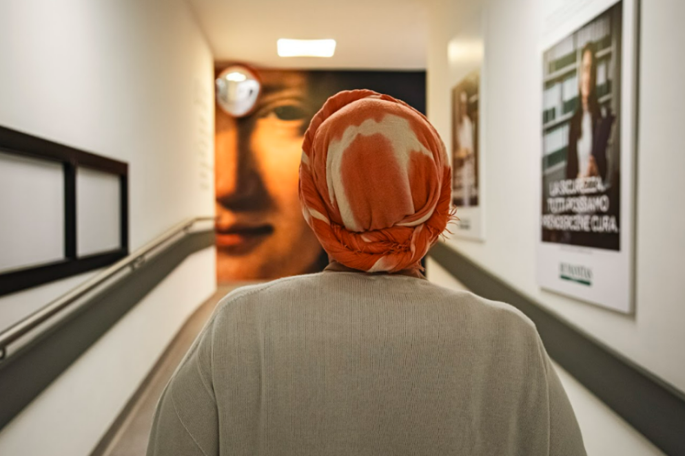 Negli ambulatori di Oculistica, un giovane Hayez nel suo Autoritratto in un gruppo di amici sorride nell’unico ritratto di sé dove indossa un paio di occhiali. «“La Cura e la Bellezza” è il modo con cui Humanitas vuole stare vicino ai propri pazienti e collaboratori. E non a caso: la bellezza, infatti, è uno degli elementi che guida la modalità con cui realizziamo gli spazi di cura, normalmente deputati a essere funzionali e sicuri. Lo facciamo perché il bello può fare stare meglio chi entra in ospedale», afferma Gianfelice Rocca, presidente di Humanitas.