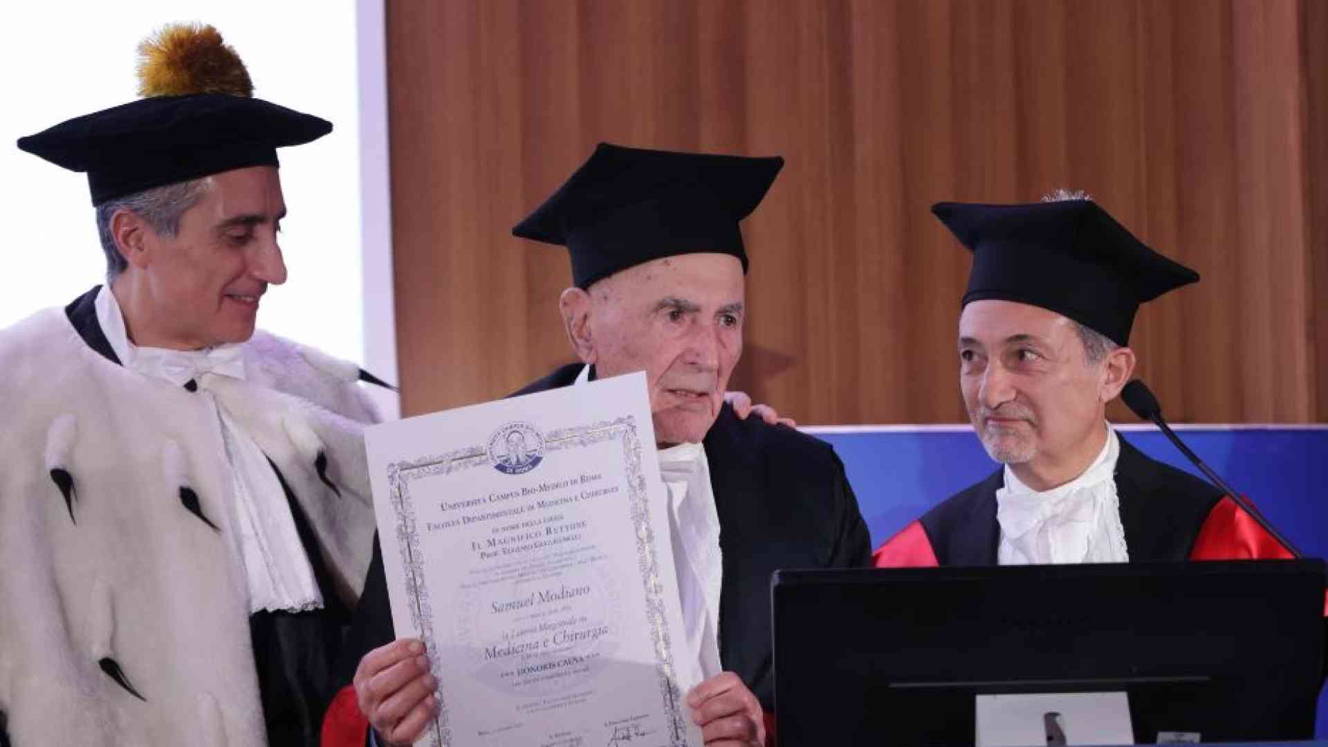 «Questo è un posto dove c’è speranza, qui fate di tutto per aiutare il prossimo. Anche a Birkenau c’erano medici, anche là si studiava. Ma per motivi diversi...». La voce di Sami Modiano si spezza: troppo dolore preme mentre ringrazia l’Università Campus Biomedico di Roma per averlo riconosciuto dottore honoris causa in Medicina. La cerimonia, di cui ha riferito Alessia Guerrieri su “Avvenire” nei giorni scorsi, è stata toccante non solo per la statura morale e la forte emozione del 93enne sopravvissuto alla Shoah: Modiano porta la sua voce forte ed esplicita in tanti luoghi di studio dei giovani, ormai da tempo ha deciso di «rompere il mio silenzio» per «testimoniare», «non dimenticare » e contribuire a far sì che «quel che ho visto non accada mai più». Ma stavolta, davanti agli studenti di Medicina, è diverso. Perché il riconoscimento accademico vede in Modiano un «medico» che applica a una società smemorata la terapia difficile ma indispensabile della verità, conosciuta e raccontata senza sconti. Come deve fare ogni buon dottore. Le sue sono parole “che curano”, come fa la medicina narrativa. Ma c’è anche la denuncia di una medicina asservita a una spietata ideologia funzionalista, alimentata dal fanatismo antisemita, che portò a concepire l’esistenza di esseri umani “meno degni” di altri perché “diversi” rispetto agli standard stabiliti dal potere, e perciò sacrificabili. Acqua passata? Le lacrime di Modiano ci dicono di stare attenti perché l’incubo rischia di tornare, debitamente dissimulato.