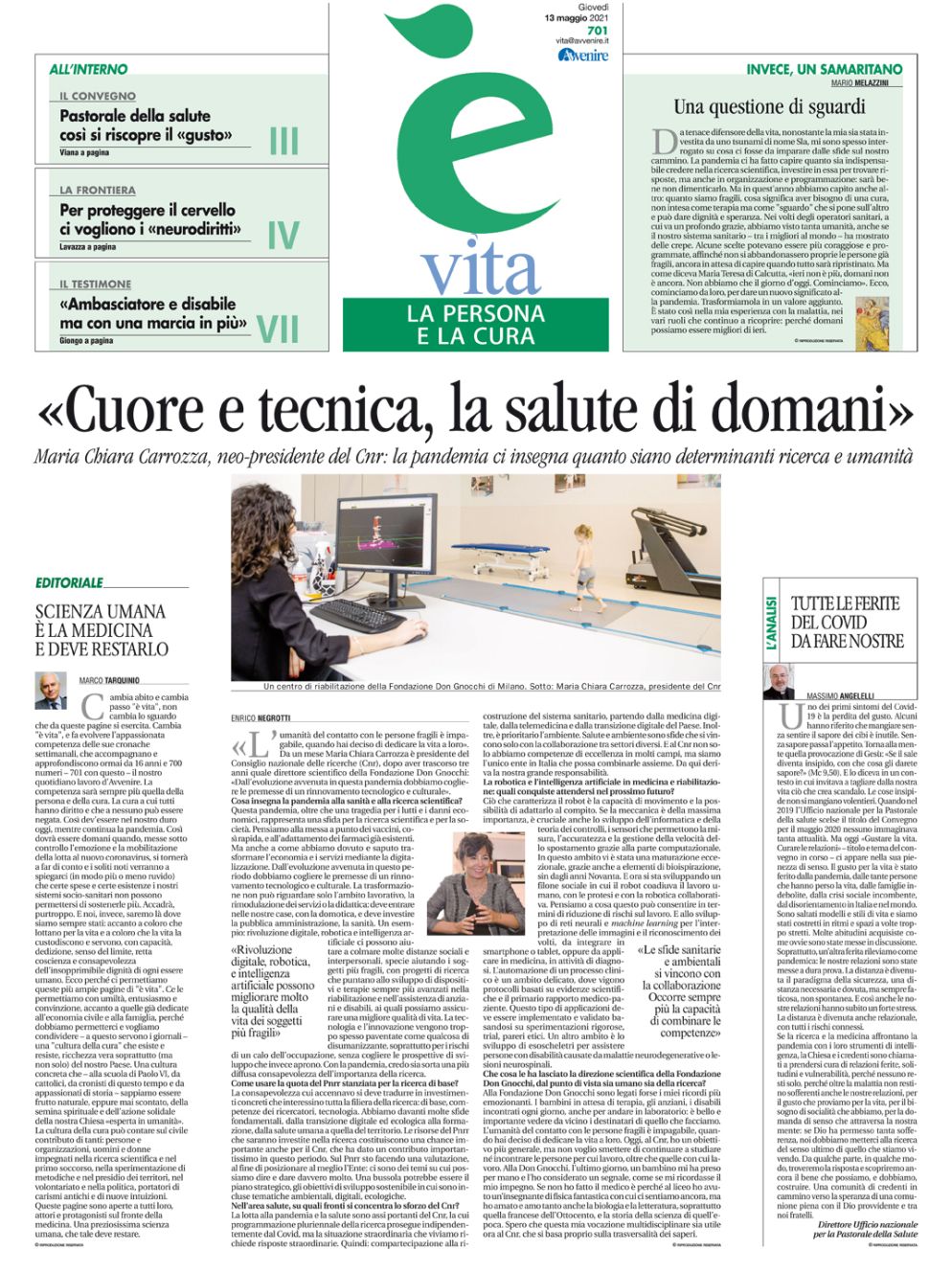 E noi, invece, saremo là dove siamo sempre stati: accanto a coloro che lottano per la vita e a coloro che la vita la custodiscono e servono, con capacità, dedizione, senso del limite, retta coscienza e consapevolezza dell’insopprimibile dignità di ogni essere umano. Ecco perché ci permettiamo queste più ampie pagine di 'è vita'. Ce le permettiamo con umiltà, entusiasmo e convinzione, accanto a quelle già dedicate all’economia civile e alla famiglia, perché dobbiamo permetterci e vogliamo condividere – a questo servono i giornali – una 'cultura della cura' che esiste e resiste, ricchezza vera soprattutto (ma non solo) del nostro Paese.