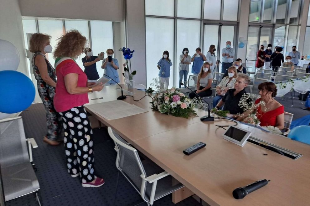 Rallentare, riflettere. Ecco la grande lezione. E imparare a prendersi più cura di se stessi e degli altri. Pronti a lasciarsi sorprendere dalle emozioni. Come quella, fortissima, che Vanelli prova quando la figlia Sofia, 10 anni, lo abbraccia da dietro le spalle. In mano ha un bouquet, e dopo il sì porge le fedi ai genitori. «Sei bellissima» le sussurra il papà. Marika, sua compagna da 12 anni, è sopraffatta dalla felicità. Vestita di rosso fiammante, con lo sguardo un po’ smarrito, ci mette qualche secondo ad afferrare le parole giuste. Strano posto per sposarsi, l’ospedale. «Non me lo immaginavo certamente così, questo giorno. Ma non conta il dove, conta con chi...».